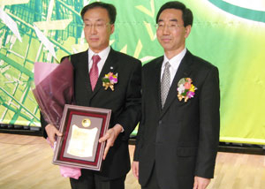 이번 수상에 대해 한국표준협회는 "현대제철 포항공장이 국제적으로 표준화된 'ISO 9000' 품질시스템을 효율적으로 운영하고 조직의 성과를 개선, 국내 철강산업의 선도자로서 국가기간 산업의 발전과 경쟁력 제고에 크게 이바지했다"고 평가했다. 현대제철 포항공장 오춘환 경영지원실장(상무·왼쪽)이 한국표준협회 최갑홍 회장으로부터 상패를 받았다. 포항·박정출기자 jcpark@msnet.co.kr
