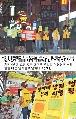 대구 남성들이 고개를 들지 못한다. '혹시 아는 사람을 만날까', '누가 알면 어쩌나' 전전긍긍이다. 대구경찰청에서 벌어지고 있는 사상 최대의 성매매 조사 때문이다. 지난 3개월간 3천명이 넘는 남성들이 경찰에 불려갔고, 연말까지 1천200여명에 대한 추가 조사가 또 이어진다.