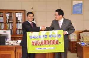 농협중앙회 경북지역본부(본부장 최종현)는 4일 경북교육사랑카드로 조성된 복지기금 5억3천500만원을 경북도교육청에 전달했다(사진). 경북교육사랑카드는 2003년부터 도교육청과 농협중앙회경북지역본부, 비씨카드(주)가 제휴해 발행한 카드로 도교육청 산하기관 교직원 및 가족, 교육행정기관이 카드를 이용하면 농협이 이용금액의 일정액을 기금으로 적립한다. 이번 복지기금은 전년도 기금액보다 9천900만원 증액된 금액으로 일자리 창출, 저소득층 지원, 학생복지사업, 교직원 연수 등 학생 및 교직원 복지증진을 위한 기금으로 활용될 예정이다.