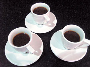 ▷물=한잔의 커피에는 물 98.7%, 커피 1.3%가 들어간다. 맛있는 커피를 만들기 위해서 물이 가장 중요한 이유가 여기에 있다. 광물질 함유수보다는 연수가 좋으며 무색무취의 물이 좋다. 20cc 한잔 기준으로 150cc 정도의 뜨거운 물이 적당하다. ▷온도=94℃ 정도의 뜨거운 물을 사용하는 게 좋다. 이때 추출 커피의 온도는 85∼87도. 여기에 크림과 설탕을 넣는 등으로 저으면 65∼70도가 된다. 이 온도로 마시는 커피에서 최상의 맛을 느낄 수 있다. 온도가 너무 높으면 이상한 쓴맛, 낮으면 떫은 탄닌 맛이 남는다. ▷원두의 양=한잔의 원두량은 6∼8g 정도가 적당하다. ▷시간=30초가량 뜸들이기를 한 뒤 3, 4분 동안 추출한다. 커피를 맛있게 마시기 위해서는 추출 커피는 30분을 넘기지 않고 서서히 마시는 게 좋다.