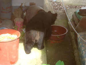 탈출한 반달곰 1마리가 폐가를 어슬렁거리고 있다. (남부소방서 제공)