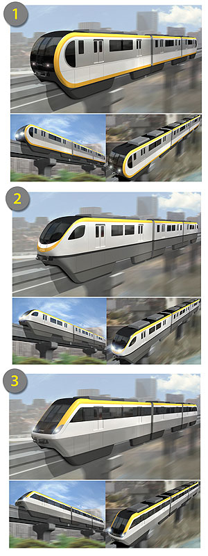 대구시는 8일 도시철도 3호선 모노레일 차량의 외부형태 디자인 3개 안을 놓고 20일까지 시민, 도시철도 1·2호선 승객, 디자인 전공 학생, 대구시 홈페이지 방문객 등을 대상으로 여론조사를 벌인다고 밝혔다.