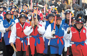 대구 중구 은빛 순라군이 11일 오후 동성로에서 발대식을 갖고 본격 활동에 들어갔다. 어르신 자원봉사자로 구성된 순라군은 일주일에 두 차례씩 오후 8시부터 10시 30분까지 취약지역 순찰, 청소년 탈선 예방, 밤길 안전 지킴이 등의 활동을 한다. 김태형기자