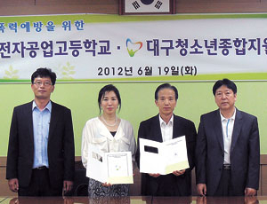 대구전자공업고등학교(교장 조송환)는 19일 학교폭력 예방 및 위기학생 지도 강화를 위해 대구시 청소년종합지원센터(이사장 김연수)와 전문가 상담, 청소년동반자(YC) 프로그램 지원 등 교육활동 업무협약을 체결했다.