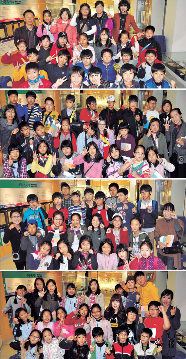 26일 대구도심 역사문화 탐방에 나선 대구 파호초등학교 4학년 1, 2, 3, 4반(위로부터) 학생들이 이상화'서상돈 고택, 한의약박물관, 청라언덕 등을 둘러보고 매일신문사 신문전시관에서 기념촬영을 했다.