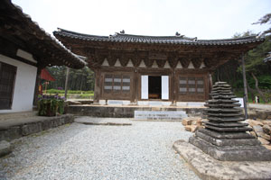 문화재청은 대웅전의 공포 형태, 창호 중간에 기둥을 두어 창문이 두 개처럼 보이는 창인 '영쌍창'(靈雙窓), 외부 마루 흔적 등에서 중건 당시 건축 특징과 변화 양상을 볼 수 있어 건축사적 가치가 크다고 평가했다. 아울러 대웅전 정면과 양 측면 기둥 아래에는 마루가 설치됐던 흔적을 보이는 큰 구멍이 있다. 이처럼 불전 정면에 마루를 둔 구조나 영쌍창은 18세기 이전 건물에서 주로 찾아볼 수 있는 양식이다.