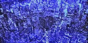 높은 곳에서 조망하는 시점으로 도시의 밤 풍경을 재현한 작품을 보면 수십만 개 비즈들의 반짝임이 눈을 압도한다. 고층 빌딩이 빽빽이 박혀 있고 일렬로 늘어선 차들의 행렬이 시작도 끝도 없이 이어지는 도심 풍경은 현대인의 삶을 모습을 단편적으로 보여준다.