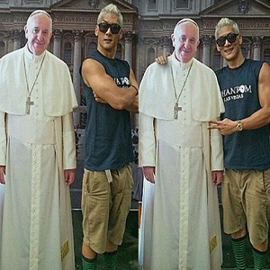 또 다른 사진에서는 선글라스를 쓴 박준형이 프란치스코 교황 판넬과 어깨동무를 한 채 브이를 해 보는이들의 폭소를 자아냈다.
