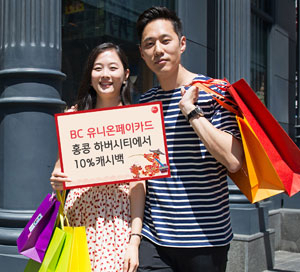 올 연말까지 홍콩을 대표하는 쇼핑몰인 하버시티에서 BC 유니온페이카드로 결제하면 매달 결제금액의 10%를 캐시백 받을 수 있으며, 현지화폐로 500홍콩달러(HKD)(약 6만6천원) 이상 구매 시에는 하버시티에서 제공하는 쇼핑백 등을 추가로 받을 수 있다. 전월 실적이나 이벤트 참여 신청 없이 BC 유니온페이카드로 결제하는 모든 회원들에게 월 최대 5만원까지 캐시백 혜택이 제공된다.