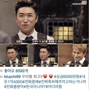 더지니어스3 장동민 우승 소식이 전해지면서 개그맨 유세윤의 인스타그램이 화제를 모으고 있다.개그맨 유세윤은 tvN 예능프로그램 '더 지니어스3: 블랙가넷' 최종 우승을 차지한 장동민에게 축하 인사를 보냈다.유세윤은 지난 18일 자신의 인스타그램에 "우리 형 최고! 상금 6000만원. 내 돈 1억4000만원"라는 글과 함께 '더 지니어스3' 캡처 화면을 게재했다.이어 유세윤은 "전화 좀 해. 진짜 축하해 주려고 하는 거니까. 전화 좀 받아. 한국 아니야? 어디야 형"라고 덧붙여 보는 이들의 폭소케 했다.앞서 장동민은 지난 17일 방송된 tvN '더 지니어스'에서 최종 우승을 차지해 상금 6000만원을 받게 됐다.유세윤, 더지니어스3 장동민 우승 축하 소식을 접한 누리꾼들은 "유세윤, 더지니어스3 장동민 얼마나 친하면" "유세윤, 더지니어스3 장동민 잠수탄거야?" "유세윤, 더지니어스3 장동민 우승 축하 빵터져" 등의 반응을 보였다.