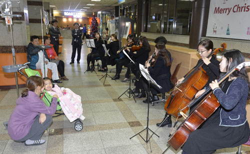 23일 대구가톨릭대학병원에서는 병원 가득 현악 4중주가 연주하는 캐럴이 퍼졌다. 대구가톨릭대 음악대학 학생 8명이 성탄절을 앞두고 환자들을 위한 작은 공연을 마련한 것.