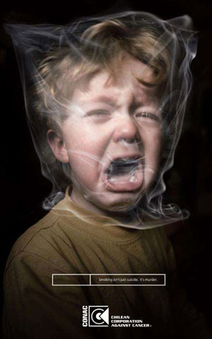 칠레의 암 예방 단체는 담배 연기에 둘러싸여 고통받는 아이의 사진을 이용해 '담배는 자살이 아니라 살인'이라고 흡연자를 위협한다. 또 호주 정부는 '금연 1주, 입맛이 돌아옴' '금연 석 달, 폐 기능이 30% 정상화됨' 등 문구를 사용, 금연 기간별로 얻을 수 있는 장점을 신체 부위별로 상세히 설명해 담배를 끊으라고 종용한다.