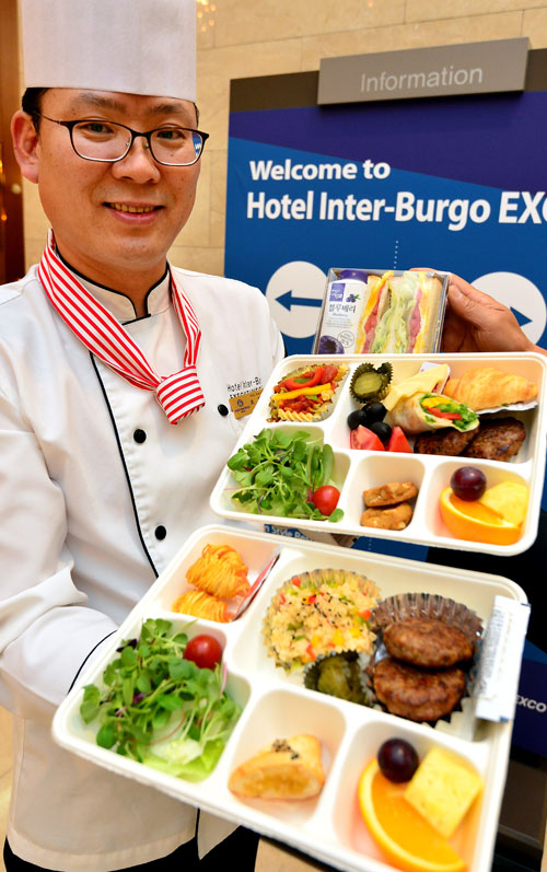 호텔 인터불고 엑스코는 '한국 음식은 글로벌 입맛에 맞게, 외국 음식은 한국식 조리법으로'를 모토로 만든 도시락을 마련했다. 나라별 귀빈들이 입맛대로 골라 먹도록 모두 16종(한국인용'이슬람교도용'채식주의자용'샌드위치 각 4종)의 점심 도시락을 하루 2천700개씩 제공한다.