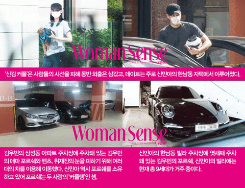 여성 매거진 우먼센스도 이날 8월호를 통해 신민아와 김우빈의 열애 소식을 알렸다. 우먼센스는 "두 사람의 데이트는 은밀하고 치밀했다"고 전했다. 지난 10일 포르쉐를 이용해 신민아의 집을 찾은 김우빈은 자신의 차를 집에 두고 몸만 빠져 나오는 방식으로 취재진의 눈을 피했다고 보도했다. 이후 스케줄은 세컨드 카인 벤츠를 이용해 움직인 것으로 알려졌다. 한 측근은 "두 사람이 신중한 성격이라 공개된 장소에서 데이트를 하지는 않지만 예쁘게 사랑을 키워가고 있다"고 귀띔했다.