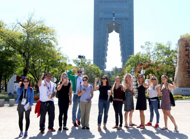 경북문경 세계군인체육대회에 참가한 미국, 페루, 브라질 선수 10여 명이 경기가 없는 날을 이용해 엑스포공원을 방문한 것.
