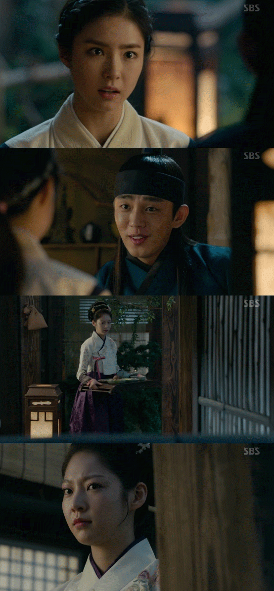 1일 밤 방송된 SBS 월화드라마 '육룡이 나르샤'(극본 김영현·박상연, 연출 신경수)에서는 이방원(유아인 분)과 분이(신세경 분)가 함께 있는 모습을 목격하는 민다경(공승연 분)의 모습이 전파를 탔다.