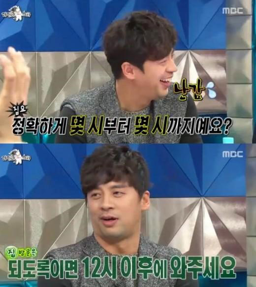 권오중은 규현의 말을 인정하며 "정확하게 몇 시부터 몇 시까지냐"고 집요하게 묻는 MC들의 질문에 "우리 집 방문할 분들은 되도록이면 12시 이후에 와 달라"고 당당하게 요청해 웃음을 자아냈다.