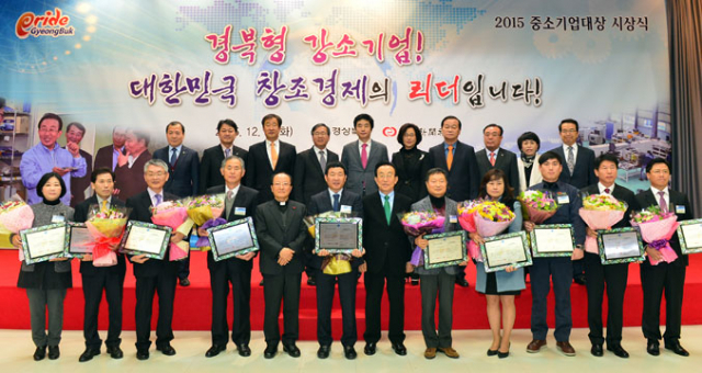 경상북도는 15일 도청 강당에서 '2015 경상북도 중소기업대상 시상식'을 열고 종합대상 1곳, 부문별 대상 4곳, 우수상 5곳 등 총 10곳의 우수 중소기업을 시상했다.