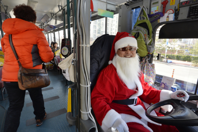 다가오는 성탄절을 맞아 대구 시내버스에 산타클로스 운전기사가 등장한다.