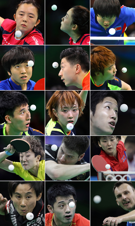 8일 오후(현지시간) 브라질 리우데자네이루 리우센트루 올림픽 탁구 경기장에서 열린 2016 리우올림픽 탁구경기에서 각국 선수들이 다양한 표정으로 공에 집중하고 있다. 2016.8.9 [연합뉴스·외신 자료사진]
