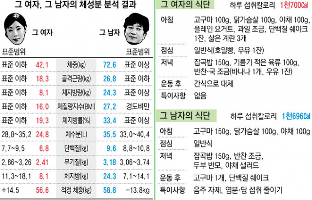 여기 두 남녀가 있다. 본지 사회부 장성현 기자와 이혜진 기자. 한 사람은 야근과 회식을 밥 먹듯이 하는 40대 초반 남성, 다른 사람은 20대 사회 초년생이다. 그 남자는 내려갈 줄 모르는 체중계 바늘이 걱정이고, 그 여자는 건강미 넘치는 몸매가 소원이다. 두 사람이 100일간의 도전을 결심했다. 비슷한 처지에 있는 이들이 따라할 수 있는 운동과 식단으로 그 남자는 건강을, 그 여자는 건강미를 되찾을 계획이다. 대구 수성구 수성동4가 두다피트니스의 협조로 조(Joe) 킴 트레이너와 권준수 트레이너가 운동법과 식단 구성에 도움을 주기로 했다. 3개월 후 그들의 몸과 건강은 어떻게 변화할까.