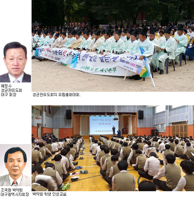 성균관유도회는 지난해 창립 70주년을 맞아 회원 2천500여 명이 모여 1946년 심산 김창숙 선생을 중심으로 창립할 당시의 '새로운 시대에 알맞은 윤리, 도덕 사회의 건설이라는 초심으로 돌아가 유림이 모범이 되고, 유림이 국가와 사회 건설에 앞장서며, 유림이 존경받는 사회로 나가자'는 재창립 결의를 다졌습니다. 대구유도회도 지난해 여성유도회 창립을 비롯한 구조적 확장과 각종 학교 학생들을 대상으로 한 인성'예절'준법교육 기회를 확대했습니다. 또 어르신을 대상으로 한 경전교육과 각종 봉사활동에 내실을 기해왔습니다.