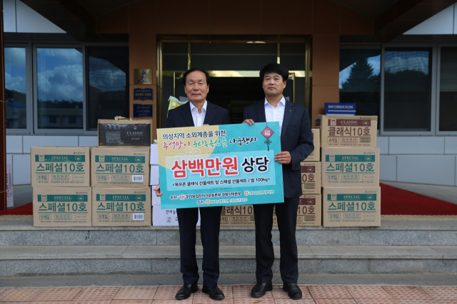 NH농협은행 의성군지부(지부장 박은수)는 10일 추석을 맞아 지역의 취약 계층에게 전달해달라며 햄 세트와 쌀 등을 김주수 의성군수에게 기탁했다.