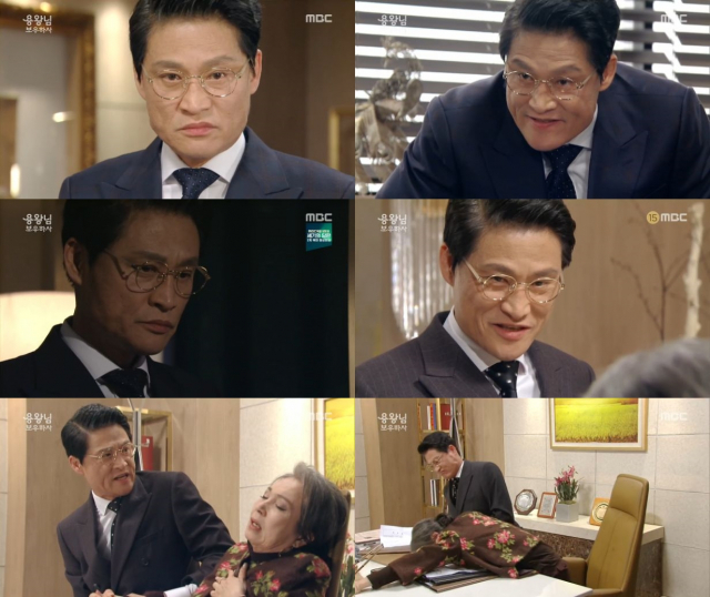 지난 26일 방송된 MBC 일일드라마 '용왕님 보우하사'에서는 자신을 해고시키려 하는 마영인(오미연 분) 회장을 살해하고 주보그룹을 손에 넣고자 시도하는 서필두(박정학 분)의 모습이 그려졌다.