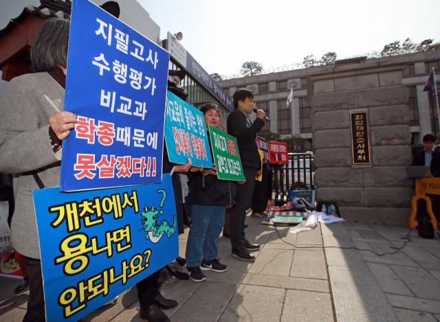 이에 자사고 이사장들과 자사고 지망생 등은 "동시선발·이중지원 금지 조항이 사학 운영의 자유, 학생과 학부모의 학교선택권을 침해한다"며 헌법소원을 냈다.