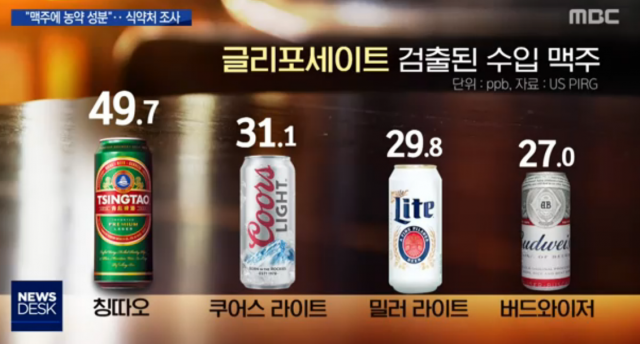 그간 해외에서는 맥주 등에서 글리포세이트(0.3∼51ppb)가 검출됐다는 발표가 있었으나, 미국 환경보호청(EPA), 독일연방위해평가원(BfR) 등은 인체에 위해가 없는 안전한 수준이라고 밝힌 바 있다.