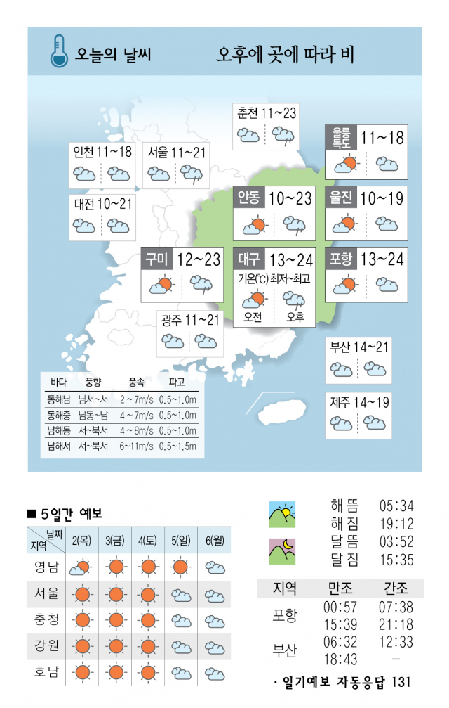 날씨-5월 1일(수) "오후에 곳에 따라 비"