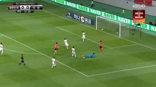 [속보] 황의조 후반 12분 골 "환상적 칩슛" 한국 이란 1대0. KBS2 tv 화면 캡처