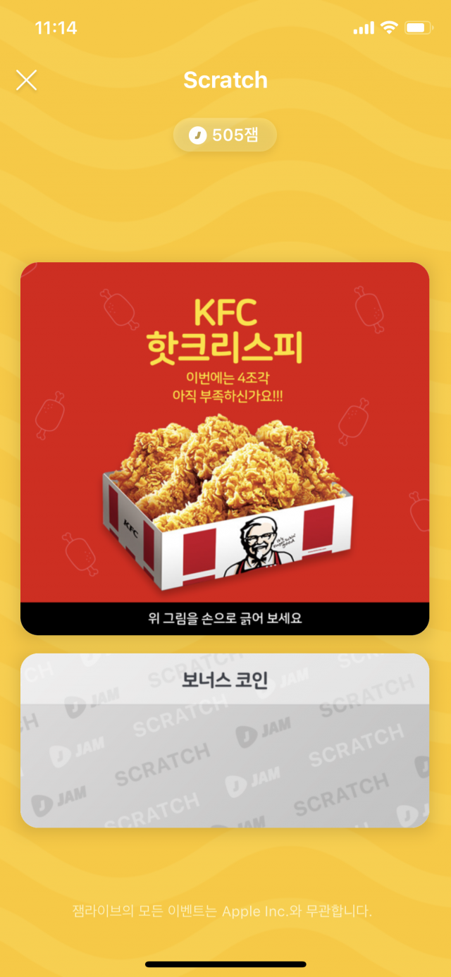 잼라이브에서 'Lucky Scratch'이벤트로 'KFC 핫 크리스피 치킨'을 경품으로 제공해 많은 잼러들의 관심이 모이고 있다.