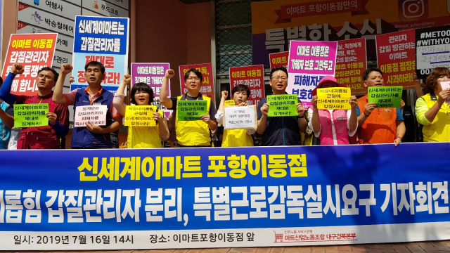 개정된 근로기준법인 이른바 '직장 내 괴롭힘 금지법'이 16일 시행된 가운데, 신세계 이마트 포항이동점 계산대 직원들이 상사로부터 지속적으로 괴롭힘을 당했다며 고용노동부 포항지청에 진정서를 제출하고 조사를 촉구했다.