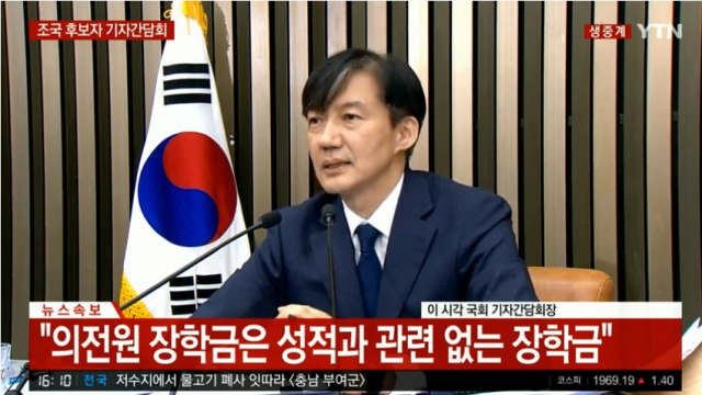 [속보] 조국 기자회견 "의전원 장학금은 성적 관련 없는 장학금"