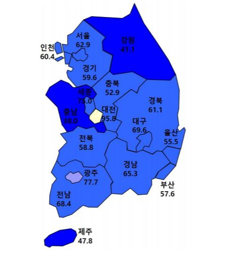 3일 주택산업연구원(주산연)이 발표한 '9월 전국 주택사업경기실사지수(HBSI)'에 따르면 9월 대구의 HBSI 전망치는 69.6에 머물렀다. 이는 8월 전망치(87.5)보다 17.9포인트(p)나 떨어진 것으로, 올 1월(69.2) 이후 가장 낮다.