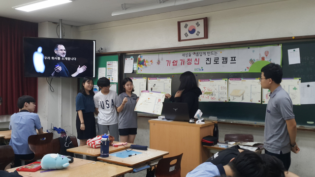 대구 시지중학교(교장 조갱래)는 최근 2학년 학생 대상으로 미래 기술 체험과 미래 직업에 대한 '미래기반 진로캠프'와 3학년 학생을 대상으로 창업의 과정으로 진로 역량을 개발하는 '기업가정신 함양을 위한 진로캠프'를 열었다.
