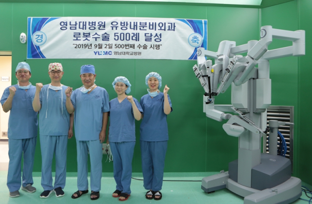영남대병원(병원장 김성호)이 수술용 로봇 도입 6년만에 갑상선암 로봇수술 500례를 돌파했다.