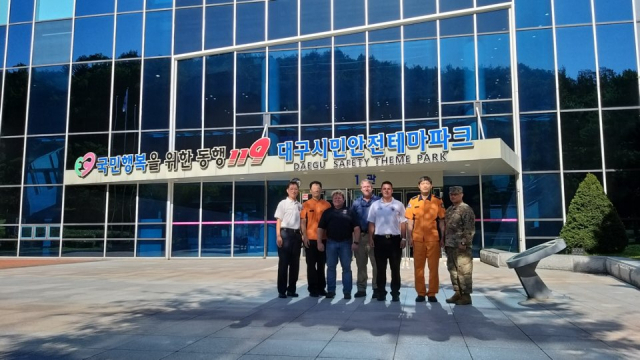 대구소방안전본부 시민안전테마파크는 지난 18일 마이크 딜(Mike Diehl) 미 8군 캠프워커 소방대장 등 미군 관계자 5명이 안전 체험 활동을 했다고 밝혔다.