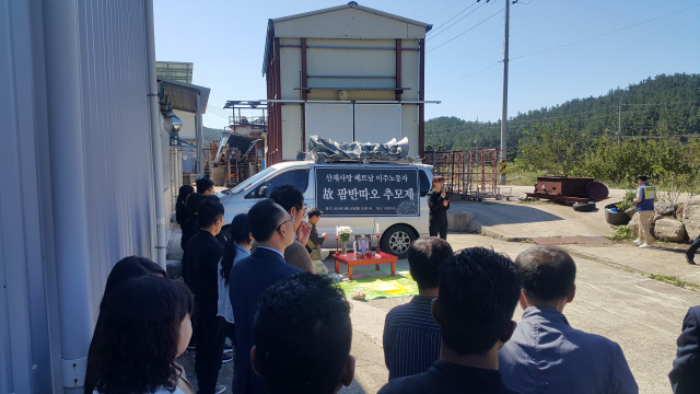 유족들과 유족들을 돕고 있는 이주노동자 인권 실현을 위한 대구경북 연대회의(이하 대경연대회의)는 아침 일찍 영덕군 영해면 영덕아산병원에서 발인해 포항시립장례식장에서 화장을 하고 사고 현장인 영덕군 축산면 수성수산에서 각계 30여 명이 모인 가운데 추모식을 가졌다.