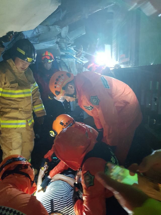 오전 1시 16분께는 경북 영덕군 축산면에서 집이 무너지면서 B(59·여) 씨가 매몰돼 숨졌다. B씨의 남편(66)은 가벼운 부상으로 구조됐다.