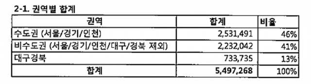 반면 비수도권(대구경북 제외)은 41%(22억원)밖에 지원받지 못한 것으로 확인됐다.