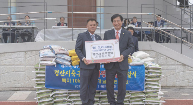 경북 경산시축구협회(회장 김만식)는 2019 경산시장기 축구대회 및 풋살대회를 개최하면서 축하 화환 대신 받은 쌀 10㎏ 200포(700만원 상당)를 어려운 이웃을 위해 써 달라며 경산시에 기부했다.