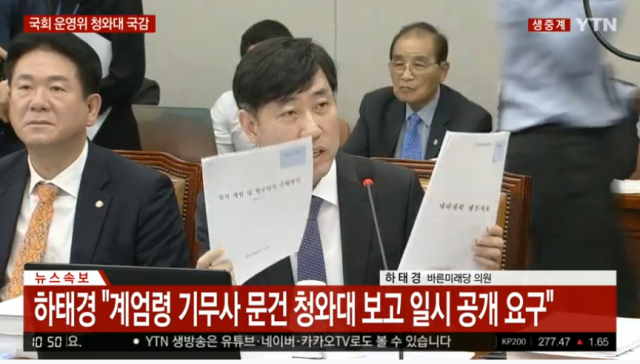 [속보] 청와대 국감…하태경 "계엄령 기무사 문건 청와대 보고 일시 공개 요구"