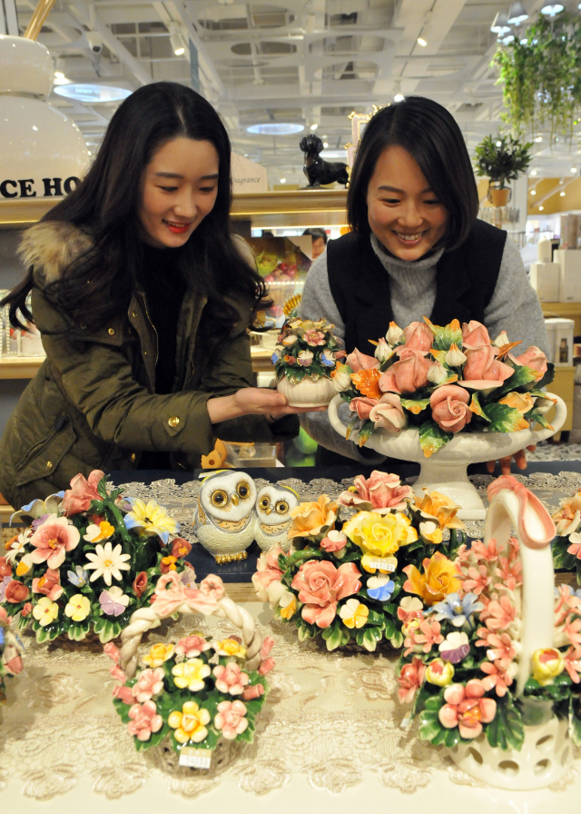롯데백화점 대구점 8층 가정용품 매장에서는 화사한 도자기 꽃 장식들이 고객 눈길을 끌고 있다. 간단하게 집안 분위기를 바꿀 수 있는 소품으로 거실 및 주방 등 다양한 위치에 연출이 가능하며, 가격은 5만~15만원이다. 롯데백화점 제공