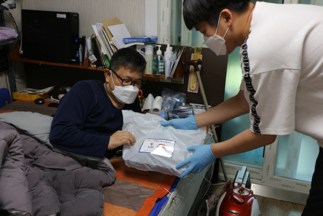 희망브리지 전국재해구호협회와 한국장애인고용공단의 지원으로 사단법인 대구광역시척수장애인협회가 코로나바이러스감염증-19(코로나19) 사태로 결식 위기에 처한 대구지역 척수장애인 200명에게 도시락을 배달하고 있다.