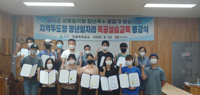 경북 칠곡군은 24일 인문학목공소에서 청년 예비창업자 10명이 참석한 가운데 '생활밀착형 목공교육 수료식'을 가졌다.