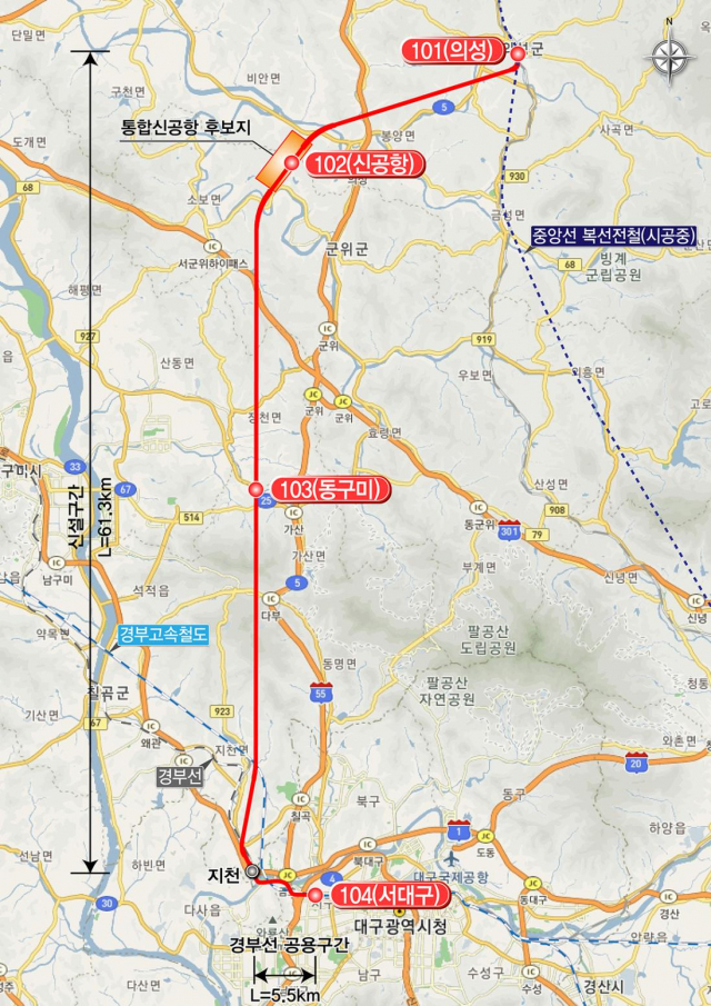 16일 경북도에 따르면 통합신공항 이전부지가 군위 소보·의성 비안 공동후보지로 확정된 이후 온라인에는 가칭 '동구미역' 위치와 관련한 부정확한 정보가 잇따라 게시됐다. 공항철도 노선 가운데 동구미역이 들어설 것을 전제로 면·리 단위까지 역 위치를 특정한 가짜 정보가 공공연히 떠돌고 있는 것이다. 경북도 철도 담당 부서에는 동구미역 위치 등에 대한 문의 전화가 10여 통 오기도 했다.
