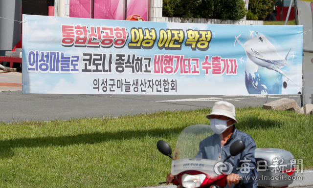 27일 경북 의성군 북원사거리에 내걸린 대구경북 통합신공항 유치 현수막이 이채롭다. 의성군에는 이같은 이색 현수막이 1천개 정도 내걸려 주민들의 기대감을 대변해주고 있다. 우태욱 기자 woo@imaeil.com