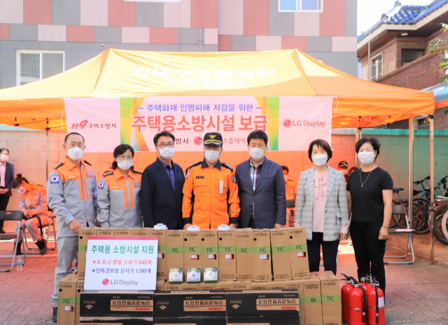 경북 구미소방서(서장 한상일)와 LG디스플레이는 15일까지 소방관서 원거리 또는 소방차량 진입이 곤란한 마을 10곳, 640가구에 소화기·단독 경보형 감지기 등을 보급한다.